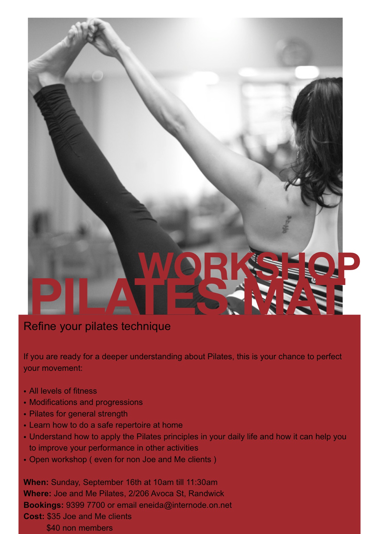 "I have been coming to Eneida's mat classes for a few years now, and both she (and the classes) are fantastic. I never thought a work out could be enjoyable! The personalised attention is unbeatable. Highly recommended!" Helen … Read More...